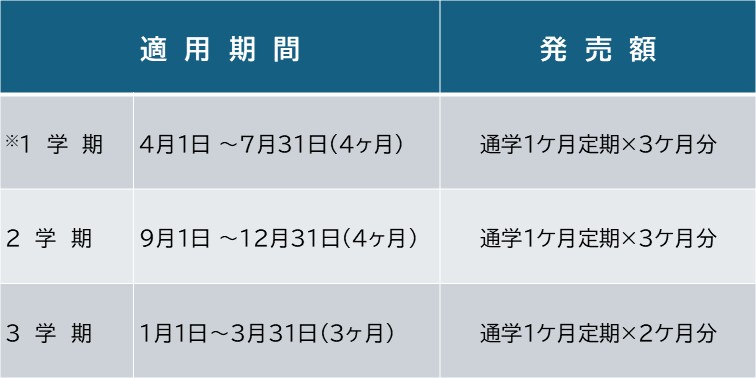 ※1学期定期券は4月1日から発売いたします。