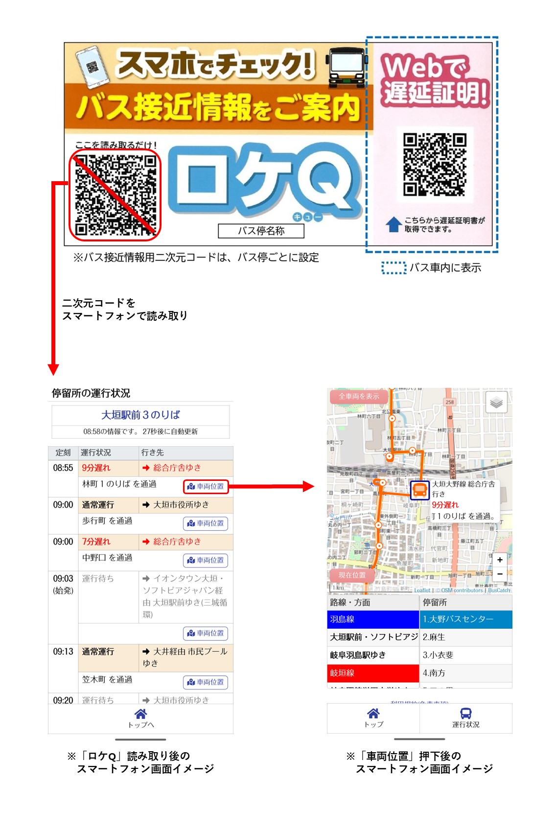 この「ロケQ」は、二次元コードをスマートフォンで読み取るだけで、一目でバスの接近情報や行き先を見ることができます。